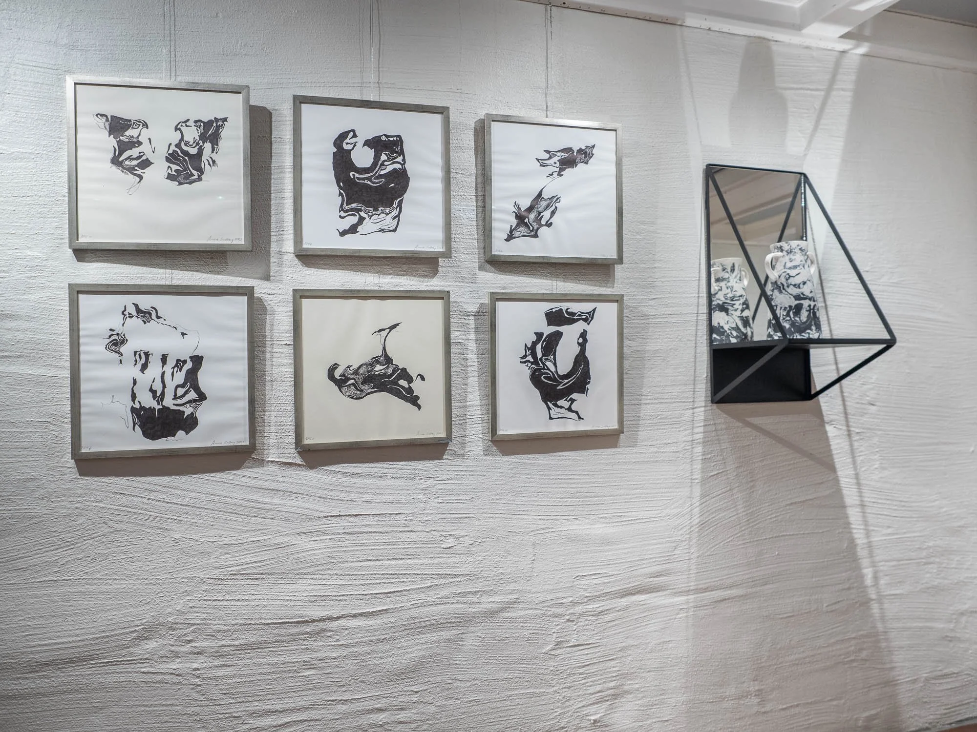Drawings of marbled images, black ink on paper. Photo: Jon Solberg